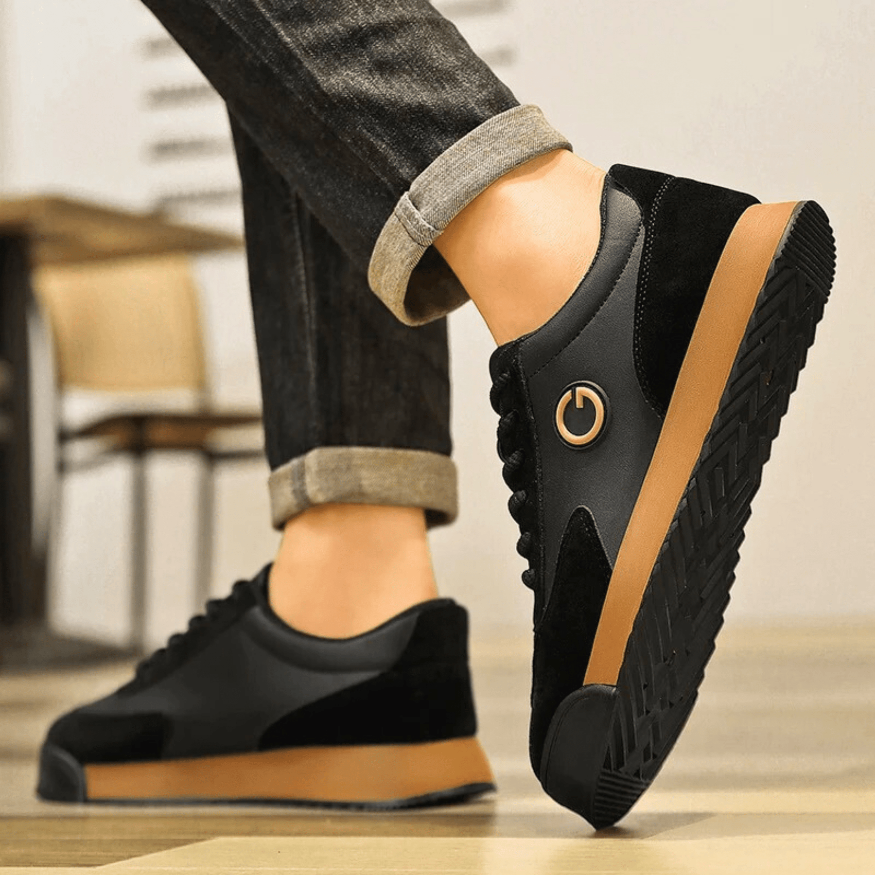 Crafted from durable leather with luxurious suede accents. Featuring a thick, supportive sole and cushioned insole with ergonomic arch support, they deliver all-day comfort in a sleek, casual lace-up design.