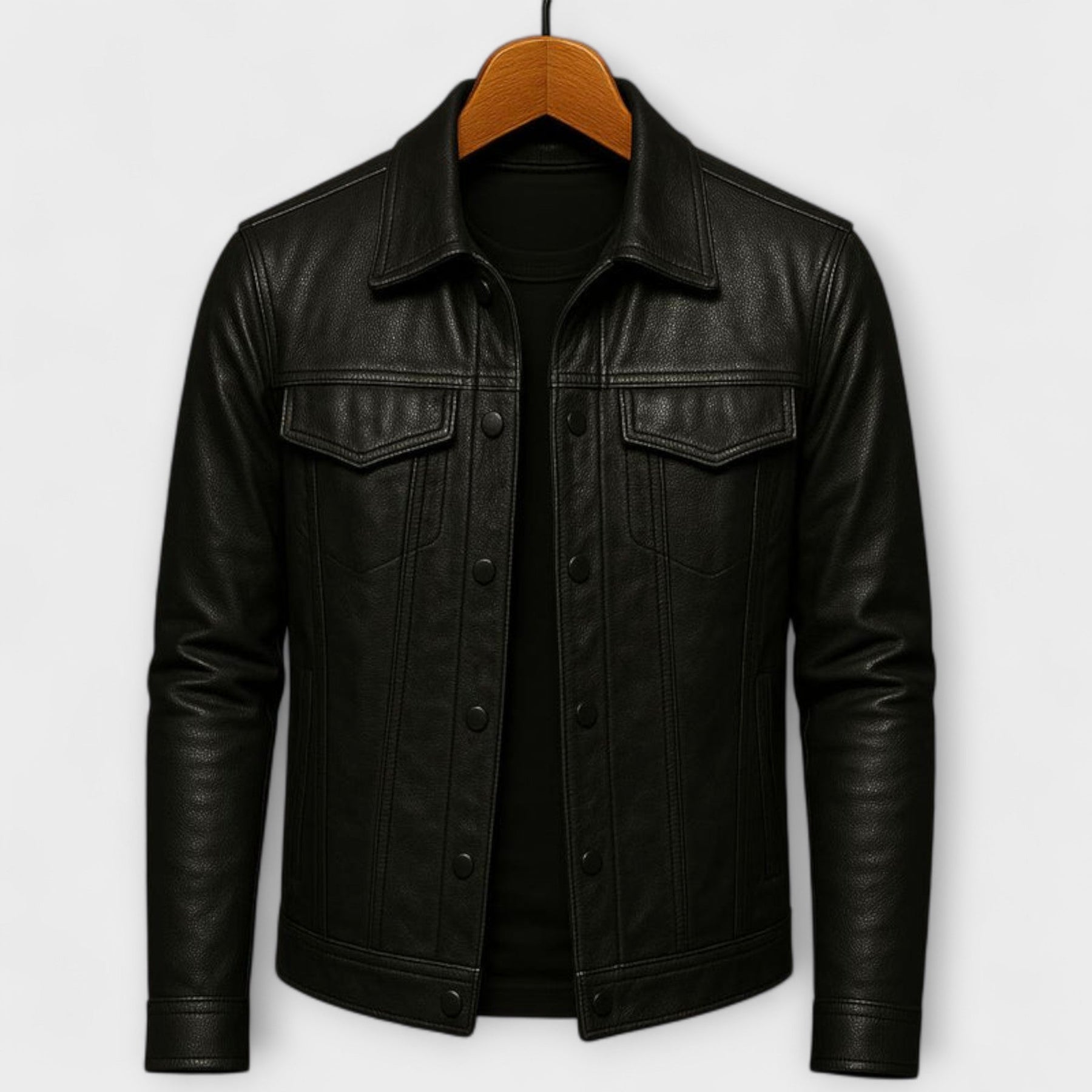 Discover an essential piece for your wardrobe with the Modern Leather Jacket, where timeless chic meets modern design. Made from genuine leather, this jacket offers a refined silhouette while integrating practical elements for all your occasions.
