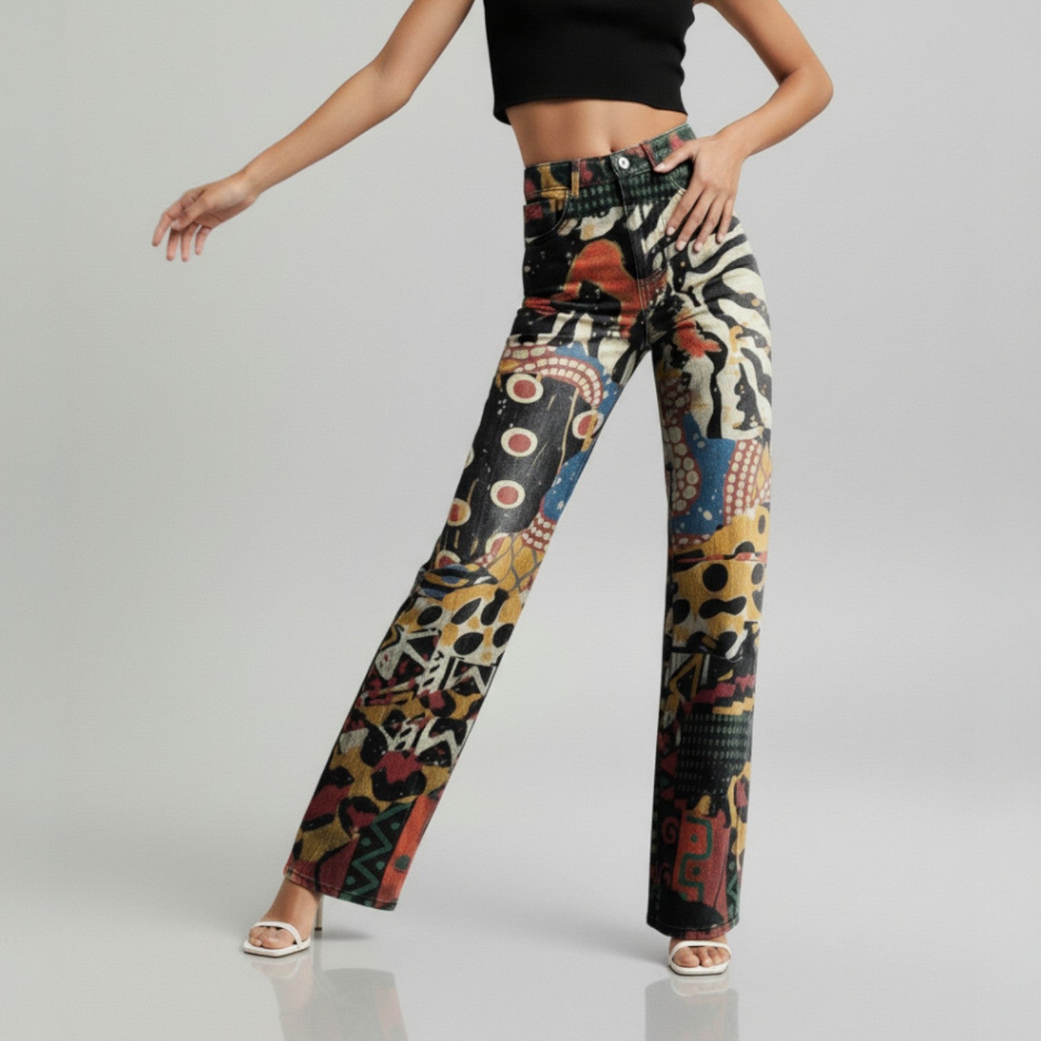 Elevate your fashion game with our luxurious Mia - Modern Colorful Wide Leg Pants. These statement pants, adorned with a striking color print, seamlessly blend sophistication and comfort, making them an essential addition to your wardrobe this season.